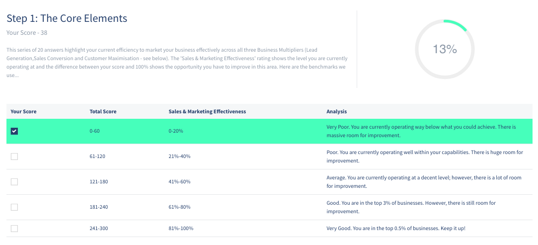After answering a series of 'yes/no' type questions our software will accurately analyse your sales and marketing